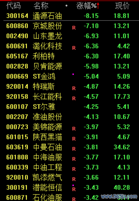 下跌方面,油气股迎来调整,洲际油气、通源石油跌超8%。