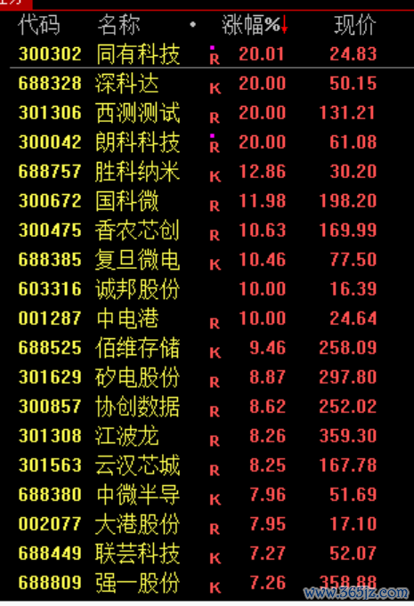 半导体产业链拉升,存储芯片方向领涨,同有科技、深科达、诚邦股份等涨停,佰维存储涨超9%续创新高。
