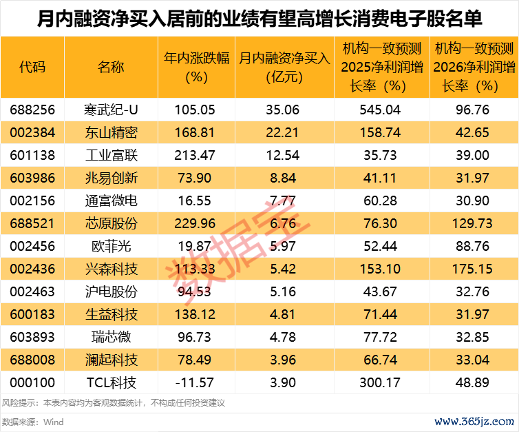 月内融资净买入居前的业绩有望高增长消费电子股名单出炉月内融资净买入居前的业绩有望高增长消费电子股名单出炉