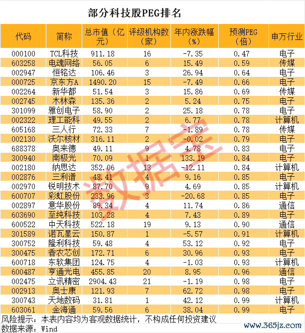估值较低的科技股名单出炉中国股票配资网估值较低的科技股名单出炉