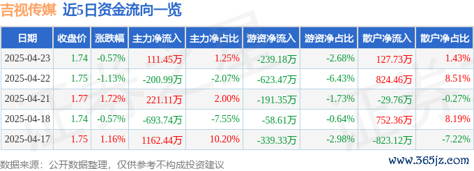 本站消息,截至2025年4月23日收盘,吉视传媒(601929)报收于1.74元,下跌0.57%,换手率1.46%新影宝,成交量50.9万手,成交额8930.29万元。